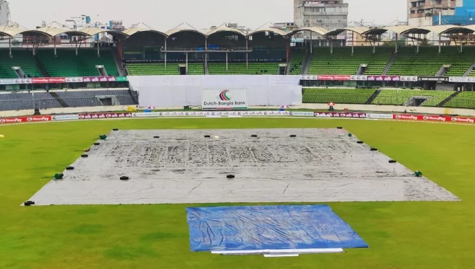 নিম্নচাপের প্রভাবে গতকাল রাত থেকেই দেশের বিভিন্ন স্থানে শুরু হয়েছে বৃষ্টি। মিরপুরে এখনো ঝিরিঝিরি বৃষ্টি হচ্ছে। ফলে ভেজা আউটফিল্ড, উইকেট কাভারে ঢাকা। গতকাল খেলা হয়েছিল ৭৯ ওভার।