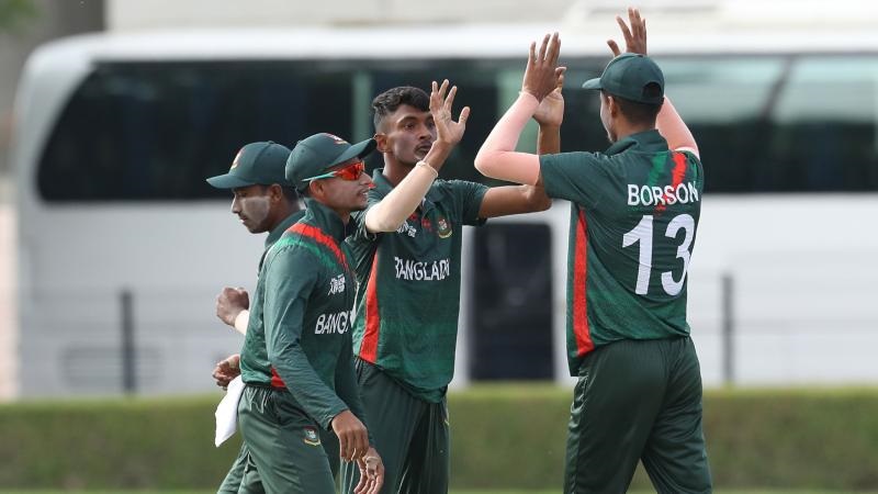 এরআগে, দুবাইয়ের আইসিসি একাডেমি মাঠ ২-এ আগে টসে জিতে ভারতকে ব্যাটিংয়ে পাঠায় বাংলাদেশ। সেখানে শুরুতে চাপে পড়ে উদয় শাহারানের দল। ১৩ রানের মাথায় টপ-অর্ডারের তিন উইকেট হারিয়ে বসে তারা। যেটির কারিগর বাঁহাতি পেসার মারুফ মৃধা।