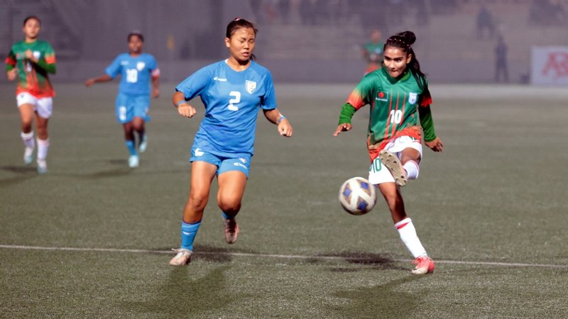 আগের ম্যাচে নেপালকে ৩-১ গোলে উড়িয়ে টুর্নামেন্ট শুরু করলেও এ ম্যাচে বাংলাদেশ গোলের জন্য অপেক্ষা করতে হয়েছে ম্যাচের শেষ মুহূর্ত পর্যন্ত। বাংলাদেশের আক্রমণ বেশ দক্ষতার সঙ্গেই সামলে নিচ্ছিল ভারত। তবে চেষ্টায় কোনো কমতি রাখেনি আফিদা খান্দকারের দল। বার বার গোলের জন্য হামলা দিয়েছে প্রতিপক্ষের রক্ষণে। তবে ভারতের রক্ষণভাগের সতর্ক দৃষ্টি এড়িয়ে গোল পাচ্ছিল না সাইফুল বারি টিটুর শিষ্যরা।