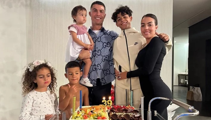 ৩৯তম জন্মদিনের পরদিন (গতকাল) রোনালদো দিনটি উদ্যাপন করেছেন পরিবারের সঙ্গে। টেবিলের ওপর সাজানো ছিল জন্মদিনের কেক তিনটি। ৩৯ সংখ্যার ৩ ও ৯ অঙ্ক দুটি বসানো ছিল দুই কেকে। দুটো অঙ্কই ছিল হলুদ রঙের। দুটির ওপরেই ছিল মোমবাতি। জন্মদিনের কেক তিনটির সামনে দাঁড়িয়ে সঙ্গিনী জর্জিনা রদ্রিগেজ ও সন্তানদের সঙ্গে ছবি তুলে সামাজিক মাধ্যমে পোস্ট করেন রোনালদো।