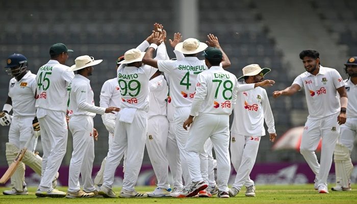 ফলে ২৫ রান করে ফিরতে হয়েছে তাকে। অষ্টম উইকেটে জয়াসুরিয়া ও কামিন্দুর জুটি ভাঙে ৬৭ রানে। এর ঠিক পরের বলেই লাহিরু কুমারাকে আউট করেছেন মিরাজ। তার ভেতরে ঢোকা বল ব্যাটে লাগাতে পারেননি কুমারা। প্যাডে লাগতেই জোড়ালো আবেদনে সাড়া দিয়ে আউট দেন আম্পায়ার।