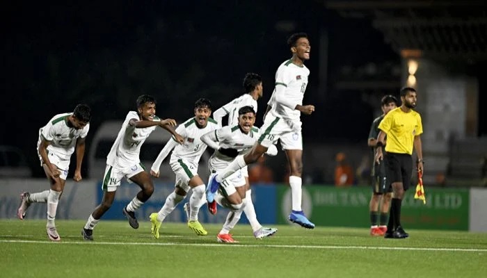 শনিবার থিম্পুর চ্যাংলিমিথাং স্টেডিয়ামে সাফ অনূর্ধ্ব-১৭ চ্যাম্পিয়নশিপের দ্বিতীয় সেমিফাইনালে পাকিস্তানকে টাইব্রেকারে হারিয়েছে বাংলাদেশ। নির্ধারিত সময়ে খেলা শেষে দুই দলের স্কোর ছিল ২-২।