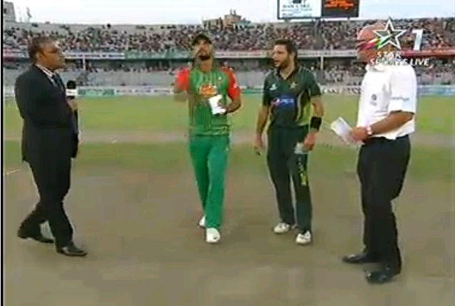বাংলাদেশ-পাকিস্তানের মধ্যকার একমাত্র টি-টোয়েন্টি ম্যাচে টস জিতে ব্যাট করার সিদ্ধান্ত নিয়েছে পাকিস্তান। বাংলাদেশ দলে একমাত্র পরিবর্তন পেসার মোস্তাফিজুর রহমান, তিনি রুবেল হোসেনের পরিবর্তে খেলছেন। এ ম্যাচের মাধ্যমে অভিষেক হচ্ছে সৌম্য সরকার ও মোস্তাফিজুর রহমানের।