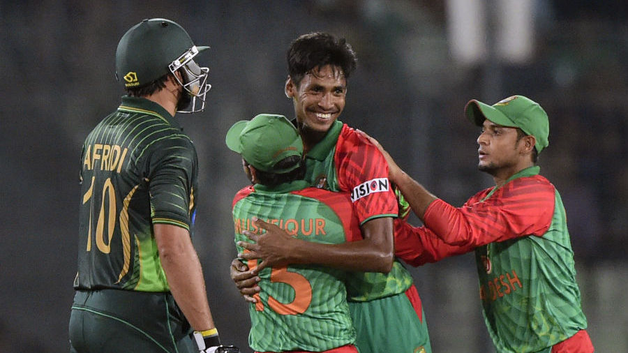 দলীয় ৫০ রানের মাথায় পাক ওপেনার আহমেদ শেহজাদ সাজঘরে ফিরলে ব্যাটিং ক্রিজে আসেন শহিদ আফ্রিদি। তবে, তাকেও দ্রুত ফেরান অভিসিক্ত মোস্তাফিজ। উইকেটের পিছনে মুশফিকের গ্লাভসবন্দি হওয়ার আগে পাক দলপতি করেন মাত্র ১২ রান।