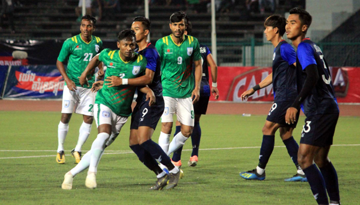 শনিবার নম পেনের অলিম্পিক স্টেডিয়ামে ম্যাচের ১৪তম মিনিটেই এগিয়ে যেতে পারতো বাংলাদেশ। তবে মতিন মিয়ার শট ব্লক করে দেন কম্বোডিয়ার ডিফেন্ডার লাই ভাহেদ। ৩৩ মিনিটে পিছিয়েও পড়তে পারতো বাংলাদেশ। কর্নার থেকে মিডফিল্ডার চং বুনাথের শট বারপোস্টের সামান্য উপর দিয়ে। এ প্রচেষ্টা ছাড়া প্রথমার্ধে প্রায় এক চেটিয়া প্রাধান্য বিস্তার করে খেলেছে বাংলাদেশই।