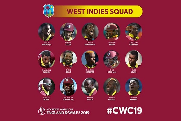 ইংল্যান্ডে অনুষ্ঠিতব্য বিশ্বকাপের জন্য দল ঘোষণা করেছে ওয়েস্ট ইন্ডিজ ক্রিকেট দল।