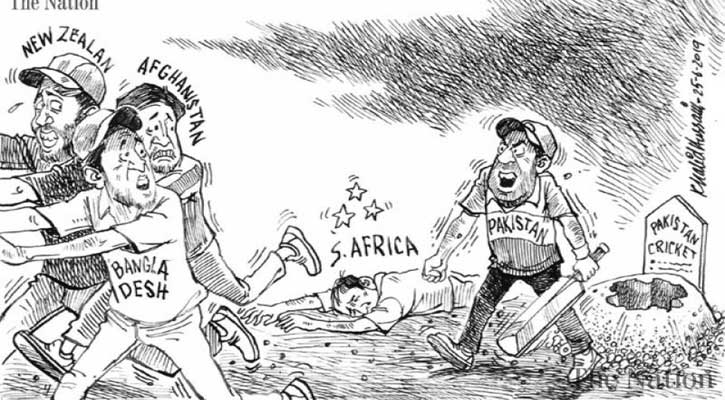 কার্টুনে দেখা যায়, পাকিস্তান ক্রিকেটের কবর থেকে জেগে উঠে দক্ষিণ আফ্রিকাকে মেরে গোরস্থানে ফেলে রেখেছে পাকিস্তান। তাদের হুঙ্কারে ছুটে পালাচ্ছে আফগানিস্তান, নিউজিল্যান্ড ও বাংলাদেশ।