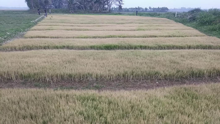 সরেজমিনে বুধবার বিকেলে ঘটনাস্থলে গিয়ে দেখা যায়, প্রায় এক বিঘা জমির ওপর লাগানো ধানের বীজতলা নষ্ট হয়ে রয়েছে। ধানের সবুজ রঙ এর চারাগুলো ধুসর হলুদ রঙ হয়ে যাচ্ছে। বীজতলার ধানের চারার সাথে সাথে ঘাস লতাও পুড়ে গেছে। এদিকে তাদের জমির আশেপাশের সব বীজতলা ঠিক রয়েছে। শুধুমাত্র তাদের জমিতেই চারা নষ্ট করা হয়েছে।
