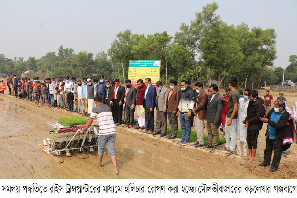 এরপর গজবাগ মাঠে রাইস ট্রান্সপ্লান্টারের মাধ্যমে হালিচারা রোপণ করা হয়। নতুন প্রযুক্তির এই পদ্ধতি দেখতে মাঠে ভিড় করেন অনেক মানুষ।