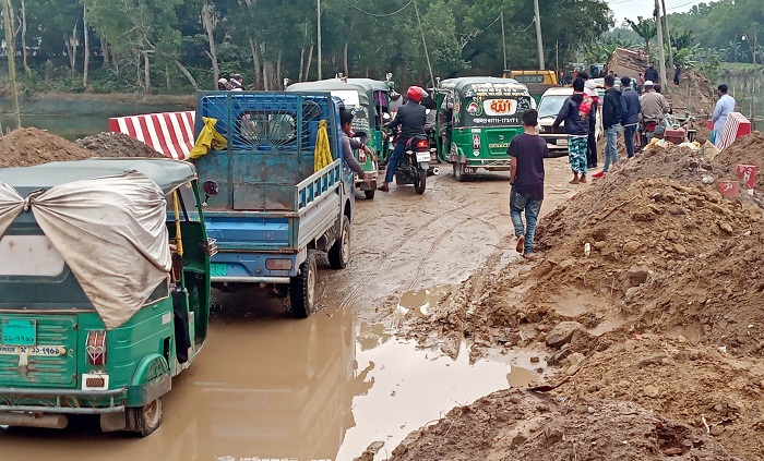 গত শুক্রবার সন্ধ্যা থেকে বৃষ্টিতে আবারও মালবোঝাই ট্রাক দেবে যাওয়ায় সড়কের দু’পাশে যানবাহন আটকা পড়ে ও দীর্ঘ লাইনের সৃষ্টি হয়।