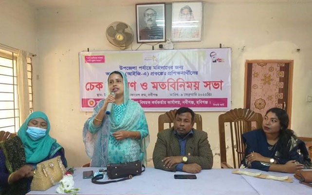 নবীগঞ্জে উপজেলা পর্যায়ে মহিলাদের আয়বর্ধক (আইজিএ) প্রশিক্ষণ প্রকল্পের ১২তম ব্যাচের প্রশিক্ষণার্থীদের মধ্যে চেক বিতরণ অনুষ্ঠিত হয়েছে।