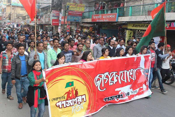 গণজাগরণ মঞ্চ, সিলেটের মুখপাত্র দেবাশীষ দেবু’র সঞ্চালনায় সমাবেশে বক্তব্য রাখেন সিলেট মহানগর মুক্তিযোদ্ধা সংসদের কমান্ডার ভবতোষ রায় বর্মন রানা, পরিবেশ কর্মী আবদুল করিম কীম, আশরাফুল কবির, সম্মিলিত নাট্য পরিষদ সিলেটের সাধারণ সম্পাদক রজতকান্তি গুপ্ত, কবি ও সংগঠক কবির য়াহমদ, কবি আবিদ ফায়সাল, ছাত্র ইউনিয়নের কেন্দ্রীয় সাংগঠনিক সম্পাদক গোলাম জিলানী শুভ, গণজাগরণ মঞ্চের সংগঠক রাজীব রাসেল, একুশ তাপাদার, দেবব্রত চৌধুরী, পাপলু বাঙালি, মারূফ অমিত, রেদোয়ান আহমদ, রোকন উদ্দিন, অদিত, উজ্জ্বল রায়, রিপন চৌধুরী, আব্দুল বাতিন, শোভন শুভ প্রমুখ।