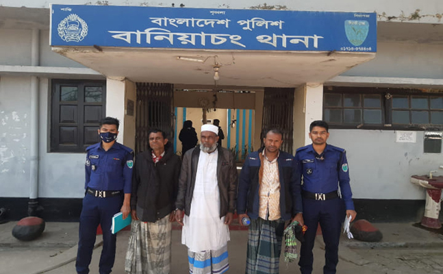 গ্রেপ্তারকৃতরা হলেন- উপজেলার ৮ নম্বর খাগাউড়া ইউনিয়নের সন্দলপুর গ্রামের মৃত আব্দুর রশিদ মিয়ার ছেলে আফতর উদ্দিন, আপ্তন উদ্দিনের ছেলে মোবারক মিয়া ও মকবুল হোসেনের ছেলে লাল মিয়া।