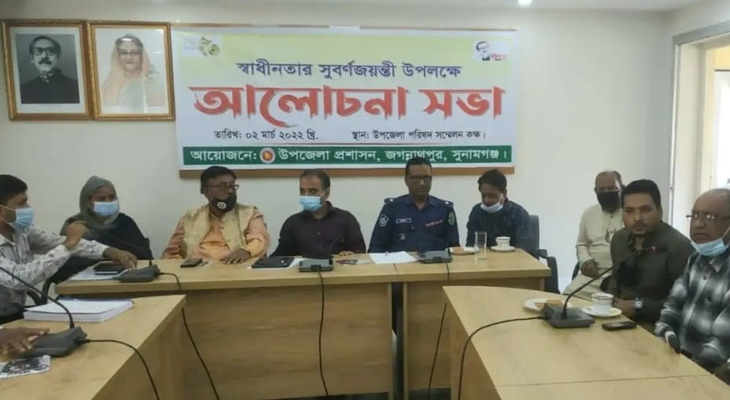 স্বাধীনতার সুবর্ণজয়ন্তী উপলক্ষে সুনামগঞ্জের জগন্নাথপুর উপজেলা প্রশাসনের আয়োজনে আলোচনা সভা অনুষ্ঠিত হয়েছে।
