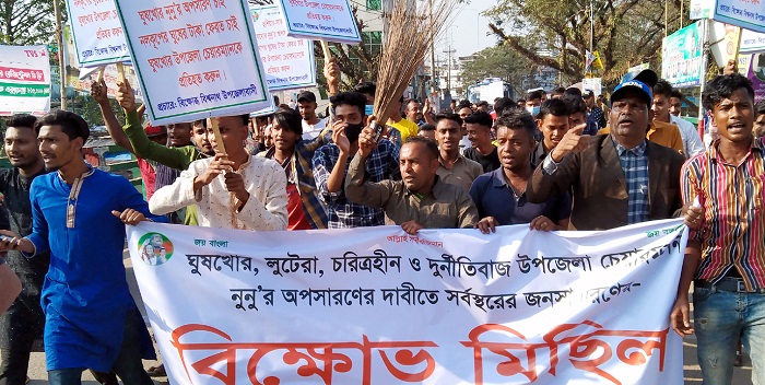 এসময় ৩৯ কোটি টাকার প্রকল্পে ব্যাপক অনিয়ম, ঘুষ-দুর্ণীতিসহ আরও নানা অভিযোগ সম্বলিত ব্যানার, ফেস্টুন ও ঝাড়ু হাতে নিয়ে মিছিল করেন বিক্ষোব্ধরা।
