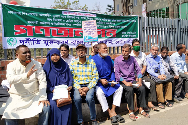 দুর্নীতি মুক্তকরণ বাংলাদেশ ফোরামের কেন্দ্রীয় সিনিয়রসহ সভাপতি ইকবাল হোসেন চৌধুরীর সভাপতিত্বে গণঅনশন কর্মসূচি পালন করা হয়।