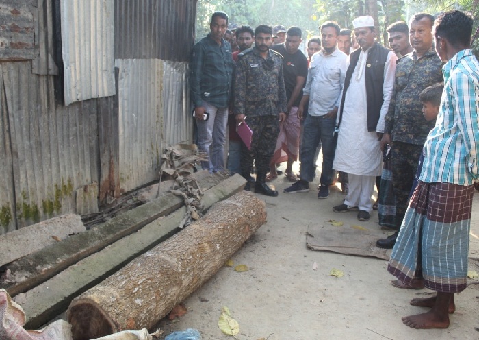 তল্লাশিকালে উত্তর কালাপুর নিবাসী মোঃ খোকন মিয়ার জবানবন্দির ভিত্তিতে মোঃ রইছ মিয়ার বাড়ি হতে চুরি যাওয়া গাছের ১ টি অংশ, মোঃ মোস্তফা মিয়ার বাড়ি হতে ১ টি অংশ, মো তছলিম মিয়ার বাড়ি হতে ০২ টি অংশ এবং মোস্তফার বাড়ির সামনে রাস্তার পাশে পুকুর পাড়ের বাঁশ ঝাড়ের নালার মধ্যে লুকিয়ে রাখা গাছের ৩ টি অংশসহ মোট ০৭ টি চুরি যাওয়া গাছের খন্ডাংশ উদ্ধার করা হয়। যার স্থানীয় বাজারমূল্য আনুমানিক চল্লিশ হাজার টাকা।