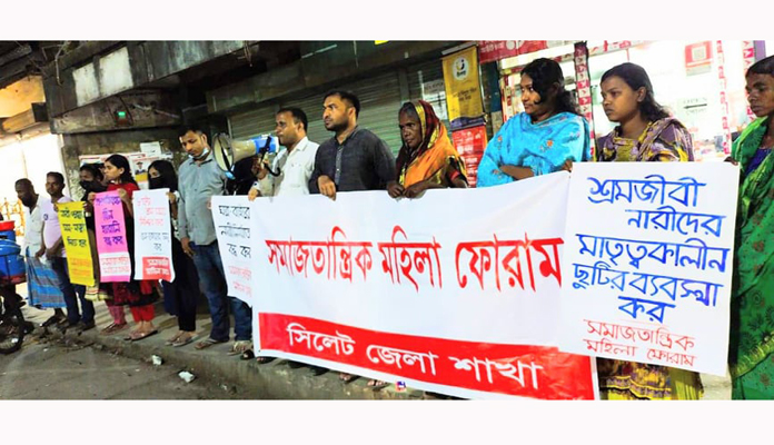 সমাজতান্ত্রিক মহিলা ফোরাম সিলেট জেলা শাখার উদ্যোগে আন্তর্জাতিক নারী দিবস উপলক্ষে মানববন্ধন ও সমাবেশ অনুষ্ঠিত হয়েছে।