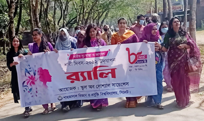 নারীর সু-স্বাস্থ্য ও জাগরণ স্লোগানকে সামনে রেখে শাহজালাল বিজ্ঞান ও প্রযুক্তি বিশ্ববিদ্যালয়ে (শাবিপ্রবি) নারী দিবস উদযাপন করা হয়েছে।