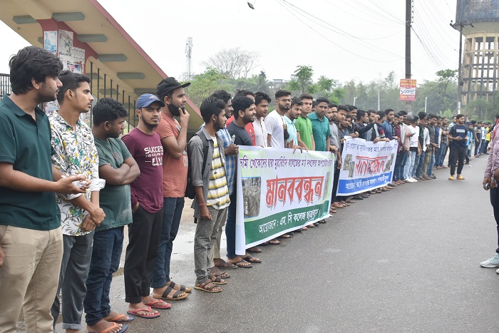 মানববন্ধনে বক্তারা বলেন, মাঠ রক্ষার্থে আমরা বিভাগীয় কমিশনার, জেলা প্রশাসক, ডিআইজি, মেট্রোপলিটন কমিশনার, শিক্ষামন্ত্রণালয়, মহাপরিচালক সহ বিভিন্ন দফতরে এম.সি কলেজের মাঠ রক্ষার জন্য স্মারকলিপি দিয়েছি। আমাদের শিক্ষক সহ শিক্ষার্থীদের আজ ক্লাসে থাকার কথা, কিন্তু একটি কুচক্রি মহলের হাত থেকে অত্র কলেজের মাঠকে রক্ষা করতে আমরা রাস্তায় এসে দাঁড়িয়েছি। এটা কোন ব্যক্তির মালিকানাধীন জায়গা নয়, এটা সরকারি জায়গা। অত্র কলেজ থেকে অনেকে শিক্ষা গ্রহণ করে সরকারি উচ্চপদস্থ জায়গায় কাজ করেছেন এবং করছেন। সাবেক অর্থমন্ত্রী আবুল মাল আব্দুল মুহিত, পররাষ্ট্রমন্ত্রী ও সাবেক শিক্ষামন্ত্রী নুরুল ইসলাম নাহিদও অত্র কলেজের পড়াশোনা করেছেন।
