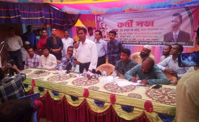 যুবদলের কর্মী সভায় প্রধান অতিথি হিসেবে বক্তব্য রাখেন- তাহিরপুর উপজেল পরিষদের সাবেক চেয়ারম্যান, সুনামগঞ্জ জেলা কৃষকদলের সভাপতি ও কেন্দ্রীয় কৃষক দলের সহ সাধারন সম্পাদক আনিসুল হক।