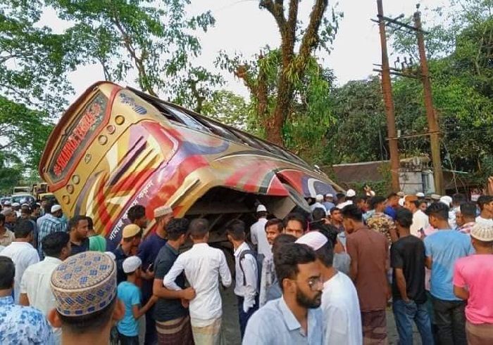 এদিকে, বাসও নিয়ন্ত্রন হারিয়ে সড়কের পাশে পড়ে যায়। এতে বাসের কয়েকজন যাত্রীও আহত হয়েছেন।