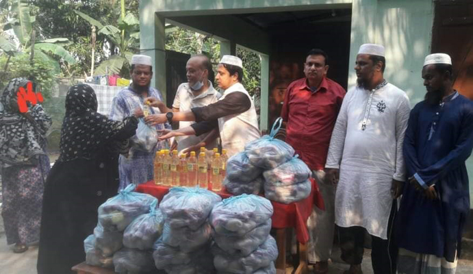 সোমবার বিকেলে উপজেলার পুরানবাজারে অর্ধশতাধিক পরিবারের মধ্যে এ খাদ্যসামগ্রী বিতরণ করা হয়।