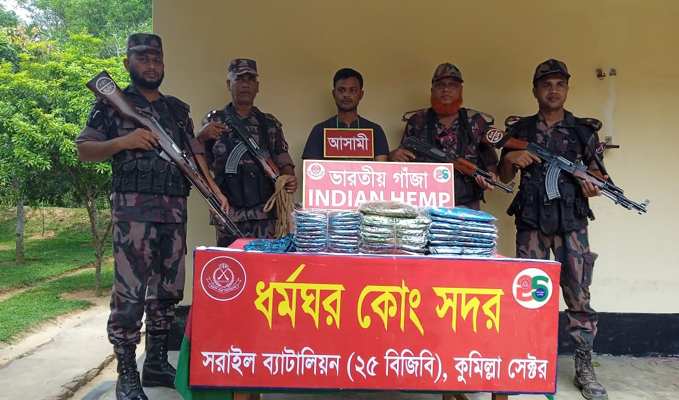আজ বুধবার সকালে ধর্মঘর বিজিবি ক্যাম্পের সদস্যরা হরষপুর বাজার সিএনজি স্ট্যান্ড এলাকায় অভিযান চালিয়ে সাড়ে ১১ কেজি গাঁজাসহ তাকে আটক করেন।