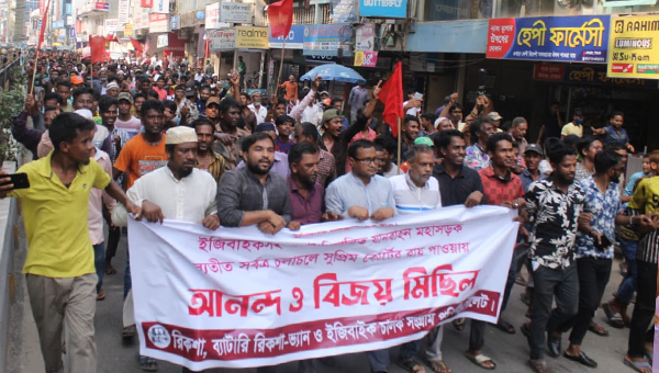 ইজিবাইকসহ ব্যাটারিচালিত সকল যানবাহন মহাসড়ক ব্যতিত সারাদেশে সর্বত্র চলাচলে সুপ্রিম কোর্টের রায় পাওয়ায় সিলেটে আনন্দ ও বিজয় মিছিল করেছে রিকশা, ব্যাটারি রিকশা- ভ্যান ইজিবাইক চালক সংগ্রাম পরিষদ।