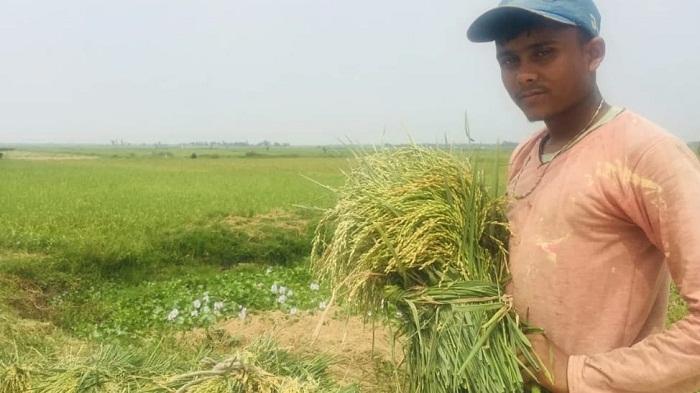 অনেকে জমির পাকা ধান পড়ে আছে। আবার কিছু কিছু জমির ধান কাঁচা আধা পাকা রয়েছে।