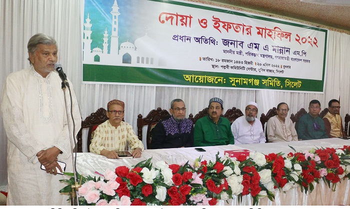 সুনামগঞ্জ সমিতি, সিলেট আয়োজিত দোয়া ও ইফতার মাহফিলে প্রধান অতিথির বক্তব্যে তিনি একথা বলেন।