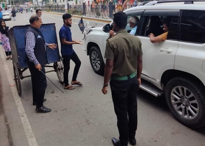 দীর্ঘদিন সিলেট মহানগর পুলিশের ট্রাফিক বিভাগের অতিরিক্ত উপ-কমিশনারের দায়িত্বে ছিলেন জ্যোতির্ময় সরকার। সম্প্রতি তাতে মহানগর পুলিশের উত্তর শাখায় বদলি করা হয়েছে। জ্যোতির্ময় বলেন, সড়ক পরিবহন আইন অনুযায়ী অবৈধ পার্কিংয়ের দায়ে ইঞ্জিনচালিত যানকে ৩ হাজার টাকা পর্যন্ত জরিমানার বিধান রয়েছে। তবে ইঞ্জিনবিহীন যানের বিষয়ে কিছু উল্লেখ নেই। কমিশনার মহোদয়ের নির্দেশে আমরা এসব যানকে অবৈধ পার্কিংয়ের দায়ে ন্যুনতম জরিমানা করে থাকি। তবে কাউকে মারধরের কোন আইন নেই।