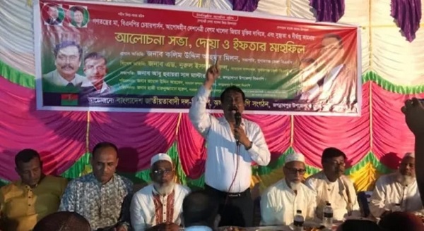 প্রধান অতিথির বক্তব্যে কলিম উদ্দিন আহমদ মিলন বলেছেন এই স্বৈরাচারী শেখ হাসিনার সরকার দেশ চালাতে সম্পুর্ণরুপে ব্যর্থ, দেশে আজ আইনের শাষন বলতেই নেই গনতন্ত্রের নামে একদলীয় শাষন চলতেছে , প্রতি নিয়ত আমাদের নেতাকর্মীর ঊপড়ে সরকার হামলা মামলা নির্যাতন চালাচ্ছে,আমরা এই স্বৈরাচারী সরকারের পদত্যাগ দাবী করছি এবং দেশে একটি নিদর্লীয় নিররক্ষ সরকারে অধিনে জাতীয় নির্বাচনের দাবী করছি। গনতন্ত্রের মা, বিএনপির চেয়ারপার্সন আপোষহীন দেশনেত্রী বেগম খালেদা জিয়ার মুক্তির দাবী করছি এবং উন্নত চিকিৎসার জন্যে বিদেশে পাটানোর আহবান করছি। ইফতারের পুর্বমুহুর্তে মহান আল্লাহর দরবারে দোয়া করা হয়েছে। দোয়াতে গনতন্ত্রের মা, বিএনপির চেয়ারপার্সন আপোষহীন দেশনেত্রী বেগম খালেদা জিয়ার সুস্থ্যতা দীর্ঘায়ু কামনা করা হয়েছে। জাতীয়তাবাদী পরিবার সহ সকলের সুস্থতা ও দীর্ঘায়ু কামনা করা হয়েছে।দোয়া পরিচালনা করেন সুনামগঞ্জ জেলা বিএনপির সহ-সভাপতি এডভোকেট মল্লিক মঈন উদ্দিন সুহেল।