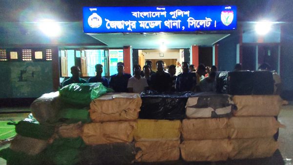 সোমবার (৯ মে) বিকাল সাড়ে ৩টায় জৈন্তাপুর মডেল থানা পুলিশ গোপন সংবাদের ভিত্তিত্বে সিলেট তামাবিল মহাসড়কের ফেরীঘাট এলাকায় চেক পোষ্ট বসিয়ে অভিযান পরিচালনা করে। আলুবাগান থেকে ছেড়ে আসা ট্রাক (ঢাকা মেট্রো ট- ২০-১৬৯৬) মহাসড়কের ফেরীঘাট এলাকায় আসার পর পুলিশের চেক পোস্ট দেখে ট্রাক রাস্তার উপর বন্ধ করে চালক পালিয়ে যায়। বিশেষ কৌশলে আনা পাথর বোঝাই ট্রাক দেখে পলিশের সন্দেহ হলে তাথে তল্লাশি চালায় পুলিশ। এক পর্যায় ট্রাকের উপর থেকে পাথর সরিয়ে দেখা যায় প্রায় কোটি টাকা মূল্যের ভারতীয় বিভিন্ন ব্যান্ডের কসমেট্রিক্স সামগ্রী। সাথে সাথে ট্রাকটি জব্দ করে পুলিশ থানায় নিয়ে আসে। এবং ট্রাক থেকে আটককৃত কসমেট্রিক গুলো থানা কোষাগারে রাখা হয়েছে।