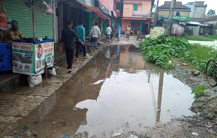 সামান্য বৃষ্টি হলেই এই সড়কে পানি জমে জলাবদ্ধতার সৃষ্টি হয়।