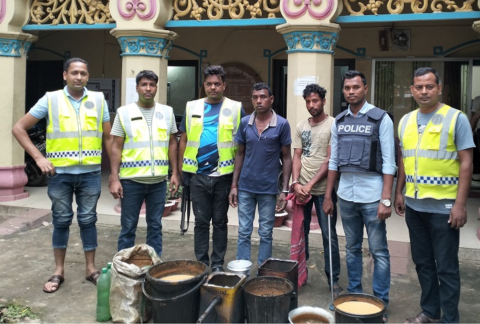 পুলিশ সূত্রে জানা গেছে, গোপন সংবাদের ভিত্তিতে শমশেরনগর পুলিশ ফাাঁড়ির ইনচার্জ ওসি (তদন্ত) মো: মোশারফ হোসেনের নেতৃত্বে উপ পরিদর্শক সোহেল রানাসহ পুলিশের একটি দল উপজেলার শমশেরনগর চা বাগানের বড় লাইনে ঠাকুর টিলা এলাকায় অভিযান চালিয়ে ১৬ লিটার দেশীয় চোলাই মদ ও ৬৫ লিটার মদ তৈরীর ওয়াশসহ তাদের আটক করা হয়।