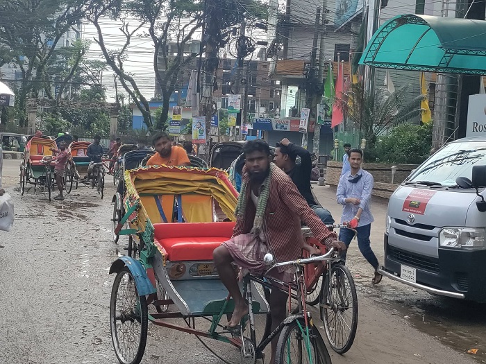 শনিবার দুপুরে উপশহরে রোজভিউ হোটেলের সামনে গিয়ে দেখা যায়, লাইন ধরে দাঁড়িয়ে আছে অনেকগুলো রিকশা ও অটেরিকশা। উপশহরের ভেতরের সবগুলো সড়ক পানিতে তলিয়ে যাওয়ায় এসব বাহন ছাড়া চলাচলের আর কোনো উপায় নেই।