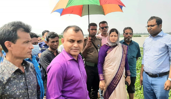 হবিগঞ্জ জেলার নবীগঞ্জ উপজেলার দিঘলবাক এলাকায় কুশিয়ারা বন্যা নিয়ন্ত্রণ বেড়ি বাঁধ পরিদর্শন করেছেন হবিগঞ্জ জেলা প্রশাসক (ডিসি) ইসরাত জাহান।