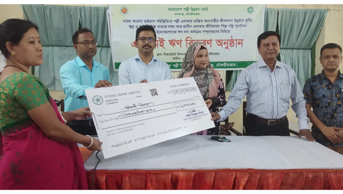 মৌলভীবাজারের কমলগঞ্জে পল্লী উন্নয়ন বিভাগের (বিআরডিবি) উদ্যোগে উপকারভোগীর মাঝে তাঁত ঋণ বিতরণ করা হয়েছে।