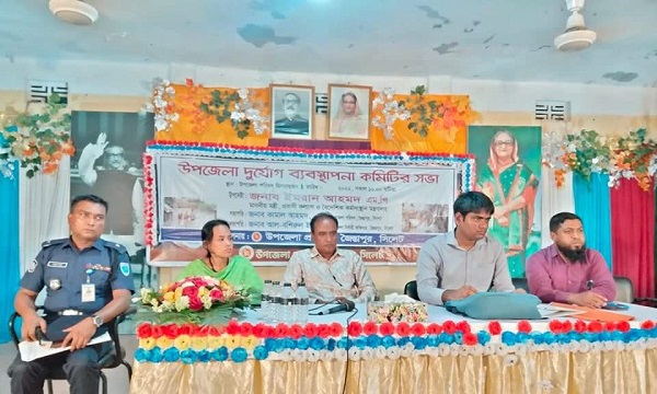 জৈন্তাপুর উপজেলায় দুর্যোগ ব্যবস্থাপনা কমিটির এক সভা অনুষ্ঠিত হয়েছে।
