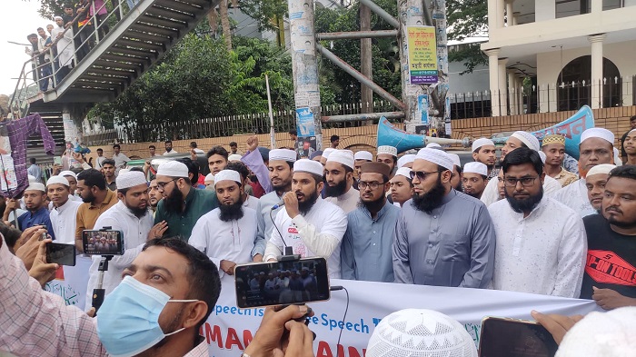এদিকে, আসরের নামাজ শেষে নগরীর বন্দরবাজার কেন্দ্রীয় জামে মজসিদের সামনে থেকে ছাত্র জমিয়ত বাংলাদেশ সিলেট মহানগর শাখার উদ্যোগে বিক্ষোভ মিছিল বের হয়। পরে সেটি ‘সিলেটের সচেতন আলেম সমাজ’র মানববন্ধনে এসে একাত্মতা পোষণ করে এবং কোর্ট পয়েন্টে বিক্ষোভ সমাবেশ অনুষ্ঠিত হয়।