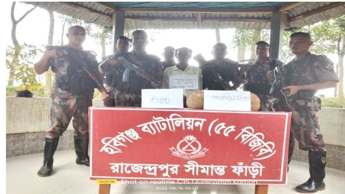 ৫৫ বিজিবি’র অধিনায়ক লে.কর্ণেল সামীন্নবী চৌধুরী জানান, মঙ্গলবার(১৪জুন)গোপন সুত্রে খবর পেয়ে রাজেন্দ্রপুর সীমান্ত ফাঁড়ির নায়েক সুবেদার শাহজাহান এর নেতৃত্বে একদল বিজিবি সদস্য উপজেলার চৌমুহনী ইউনিয়নের রামনগর গ্রামে পুরাতন বসত ঘরে(মাটির ঘরে)অভিযান চালিয়ে আব্দুল আলী(৬০) কে সাড়ে ৬ কেজি গাঁজা ও ২৪৬ পিস ইয়াবাসহ আটক করা হয়েছে।
