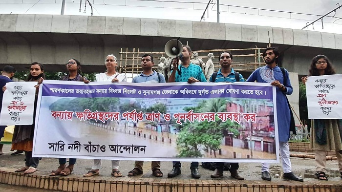 সারি নদী বাঁচাও আন্দোলনের উদ্যোগে অনুষ্ঠিত এ সভায় অবিলম্বে সুনামগঞ্জ বন্যা দুর্গত এলাকা ঘোষণার দাবি জানানো হয়।