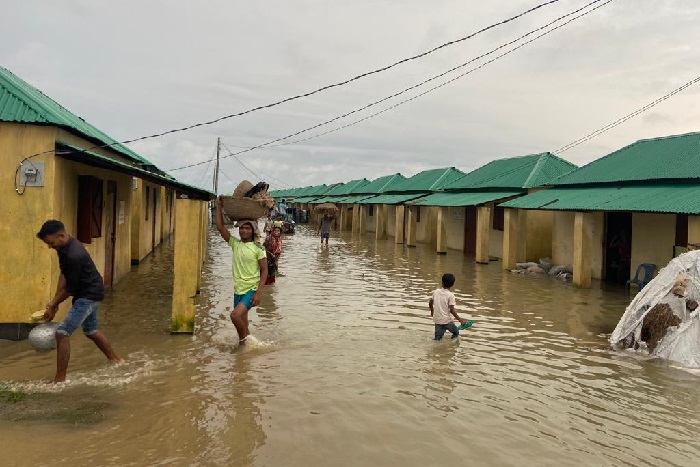 এদিকে, আজমিরীগঞ্জের কাকাইলছেওয়ে সরকারি খাদ্য গুদাম সংলগ্ন গৃহহীনদের জন্য নির্মিত আশ্রয়ণ প্রকল্পের ঘরগুলোতে প্রায় কোমড় পানি প্রবেশ করছে। আশ্রয়ণ প্রকল্পের বাসিন্দারা ঘর ছেড়ে শুক্রবার সন্ধ্যায় নিরাপদ আশ্রয়ের খোঁজে নিকটবর্তী খাদ্য গুদামের সামনে জড়ো হচ্ছেন। বদলপুর ইউনিয়নের পাহাড়পুরের শ্রীরামপুর, নদীপুরসহ বেশকটি গ্রামে ইতোমধ্যে পানি প্রবেশ করছে।