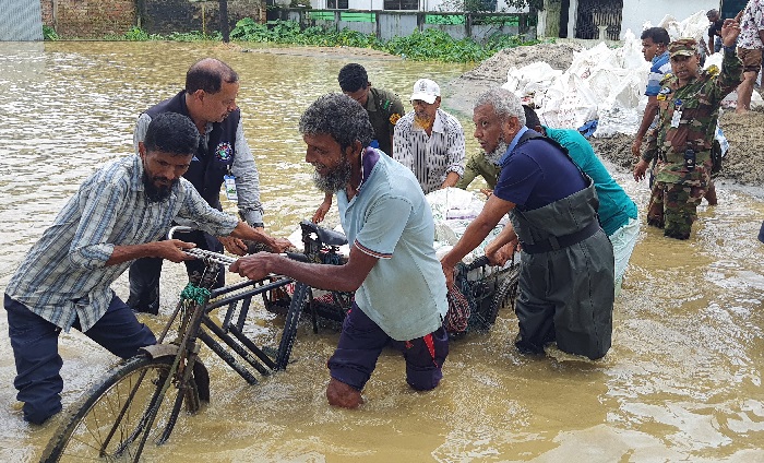 এছাড়া সিসিক মেয়র আরিফুল হক চৌধুরী বন্যার্তদের খোজ নিতে বিভিন্ন এলাকা পরিদর্শ করেন।