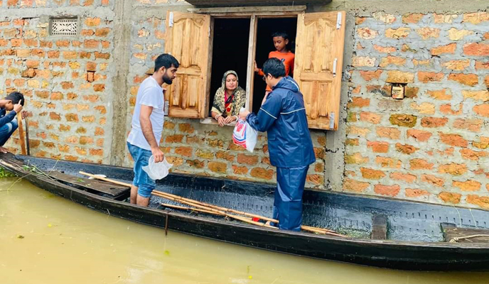 এদিকে বন্যার্তদের পাশে দাঁড়িয়েছেন ছাত্রলীগের সাবেক সাধারণ সম্পাদক এস এম জাকির হোসাইন। তিনি স্থানীয় যুবলীগ, ছাত্রলীগের নেতাকর্মীদেরকে সাথে নিয়ে নৌকা যোগে প্রত্যন্ত অঞ্চলে খাদ্য সামগ্রী নিয়ে বিতরণ করছেন। ক্ষতিগ্রস্থ পরিবারে ত্রাণ সামগ্রী বিতরণের পাশাপাশি আশ্রয় কেন্দ্রগুলোতে খাদ্যও দিতে দেখা যায় তাকে।