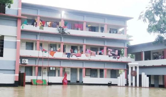 এখনও লোকালয়ে পানি প্রবেশ অব্যাহত রয়েছে। এতে নতুন করে বিভিন্ন এলাকা প্লাবিত হচ্ছে। এ এলাকার আশ্রয়কেন্দ্র আজাদ বখত স্কুল অ্যান্ড কলেজ ও দাউদপুর সরকারি প্রাথমিক বিদ্যালয়ের নিচতলা জলমগ্ন হওয়ায় এখানে দ্বিতীয় ও তৃতীয়তলায় আশ্রয় নেওয়া প্রায় দুইশ পরিবার পানিবন্দি অবস্থায় রয়েছে।