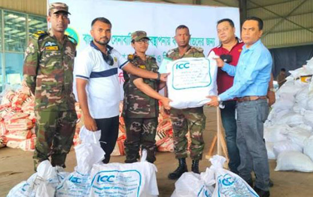 টাইমস মিডিয়া লিমিটেডের জিএম এলাহী মনজুরুল হক ও ডেপুটি জেনারেল ম্যানেজার মেজর (অব.) সালাহ উদ্দিন ভুইয়া শুক্রবার সেনাবাহিনীর ৩৮ এসটি ব্যাটালিয়নের মেজর মো. মেজবাহউদ্দিনের কাছে এ ত্রাণ হস্তান্তর করেন।