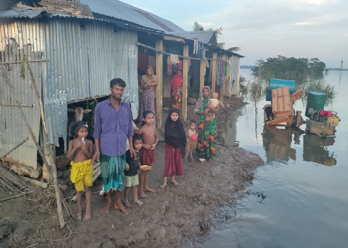 ছড়িয়ে-ছিটিয়ে থাকা ঘরের চালের টিন কুড়াতে কুড়াতে তিনি বলেন, ‘পানি তো নামছে। কিন্তু আমাদের সব নিয়া গেছে পানি। পরনের কাপড় ছাড়া আর কিছুই অবশিষ্ট নাই। মানুষের দেয়া সহায়তায় কোনো রকমে খেয়ে বেঁচে আছি। কিন্তু এখন ঘর মেরামত করব কী করে? আসবাবপত্র কেনারই বা টাকা পাব কোথায়?’