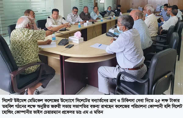 সিলেটের বন্যাদুর্গত এলাকার মানুষের জন্য ২৫ লক্ষ টাকার প্রাথমিক তহবিল ঘোষণা করেছে সিলেট উইমেনস মেডিকেল কলেজ হাসপাতাল। এই তহবিল থেকে বন্যার্তদের মাঝে ত্রাণ ও চিকিৎসা সহায়তা দেয়া হবে।